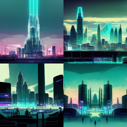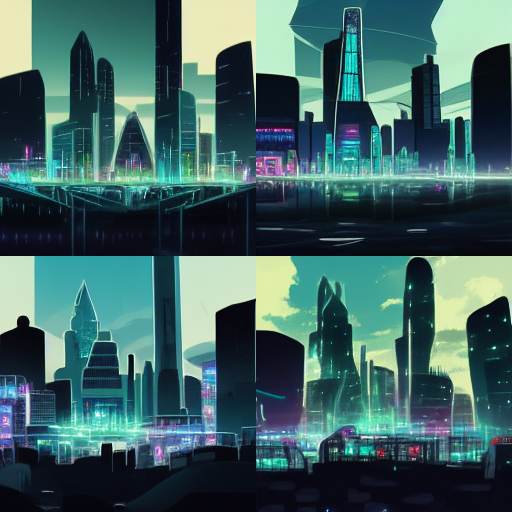 cyber punk hologram futuristic city in anime style